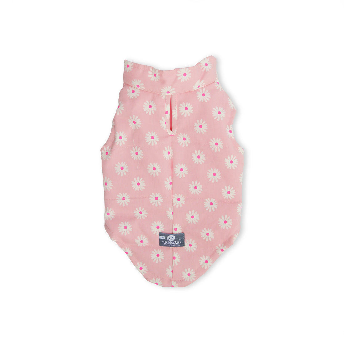 🌭 Chaleco dril menta margaritas verde y fucsia para larguitos