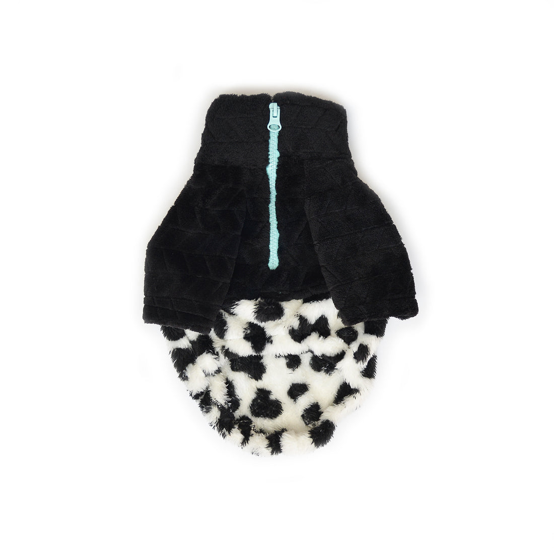 Saco cuello alto cremallera bisonte blanco manchas negras con corte negro