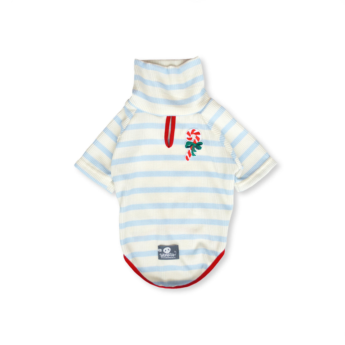 Saco tortuga rayas blanco y celeste parche bastón navidad