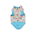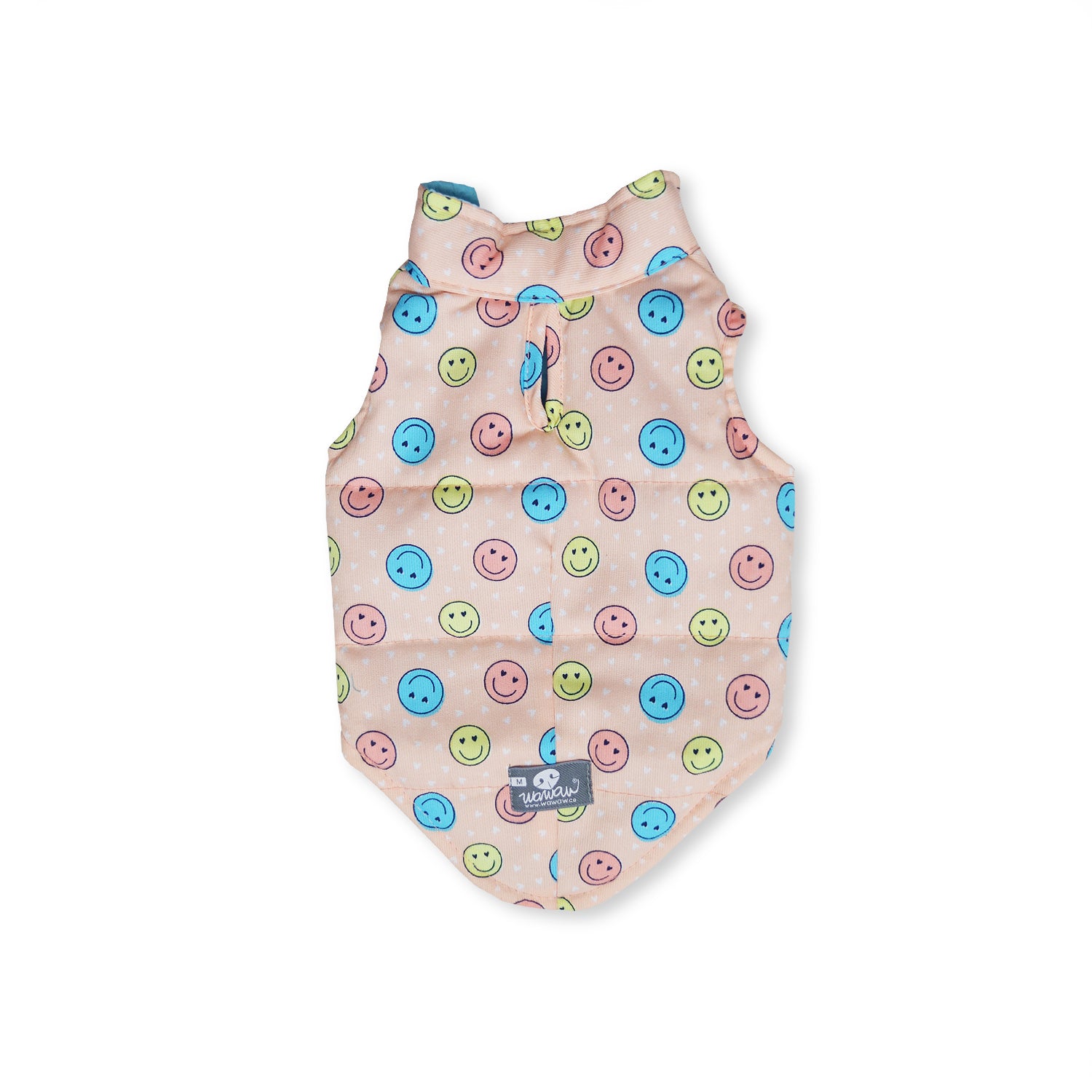 Chaleco dril naranja caritas azul, amarillo y rosa